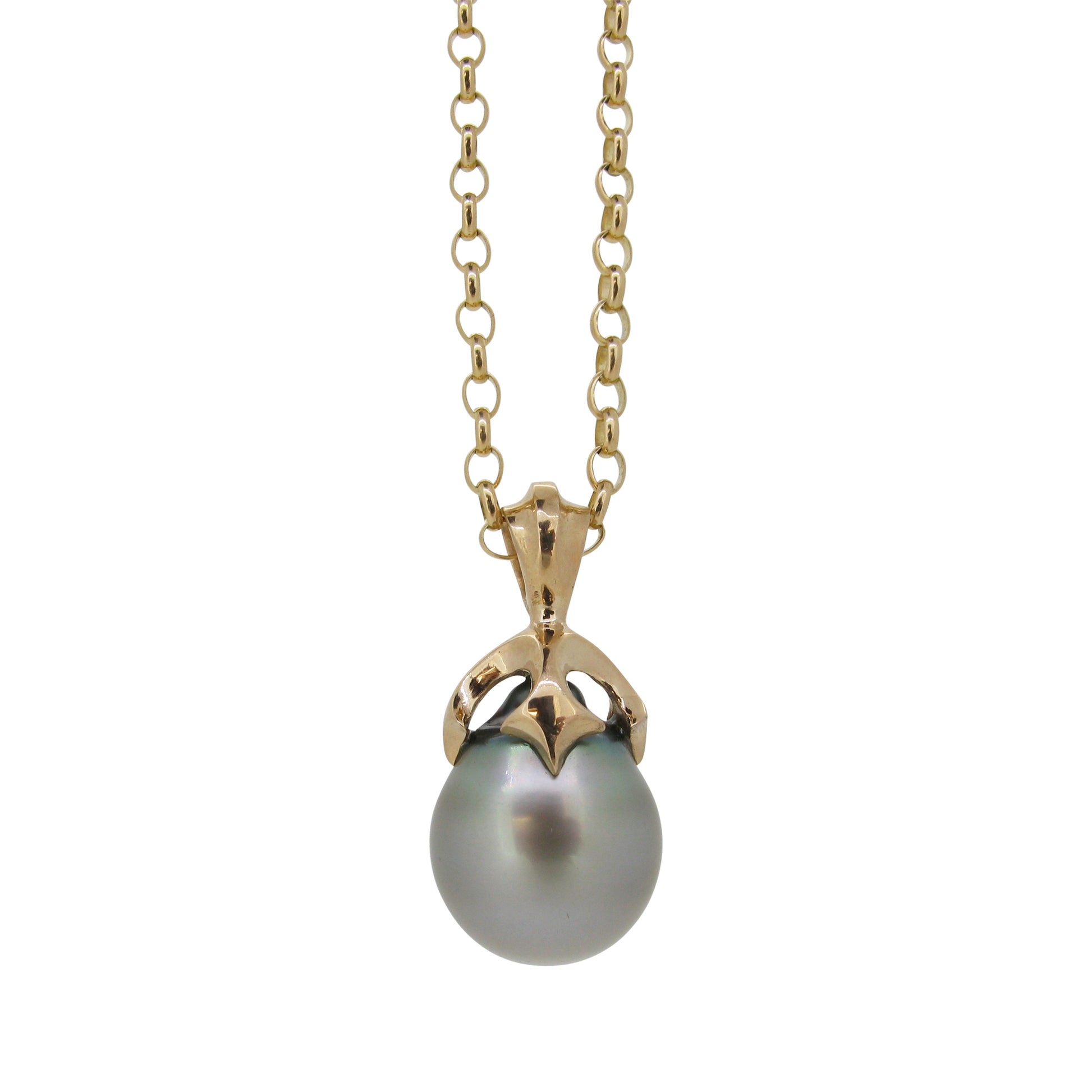 Large Majesty pendant set with silver Tahitian pearl in 9ct Ina Gold